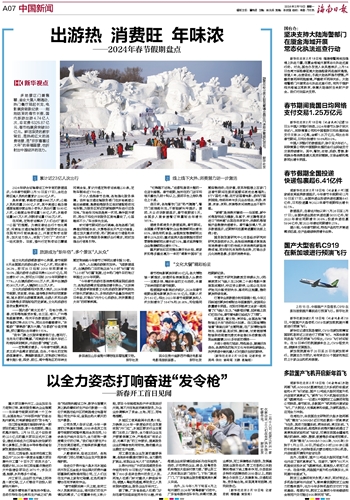 “今年春节旅游市场消费规模呈现旺盛活力,各地旅游需求延续强劲增长势头。”北京第二外国语学院首都文化和旅游发展研究院执行院长厉新建认为,多样旅游产品叠加传统节日体验,打造出“开开心心旅游去,欢欢喜喜过大年”的浓厚氛围。