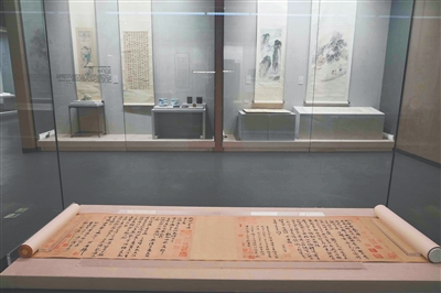 北宋苏轼《新岁展庆帖 》《人来得书帖》合卷(一级甲等文物)。 故宫博物院藏 海南日报记者 张茂 摄