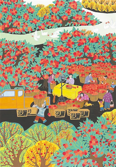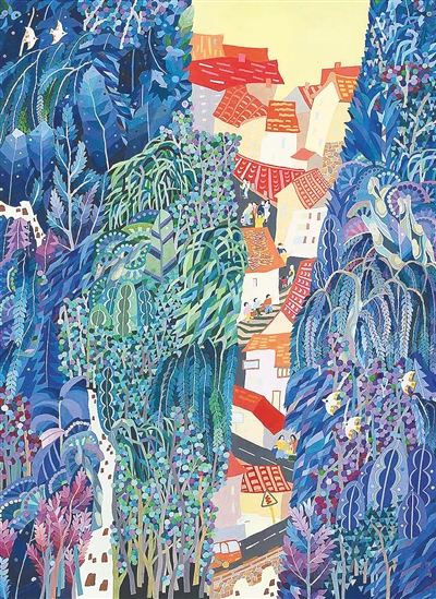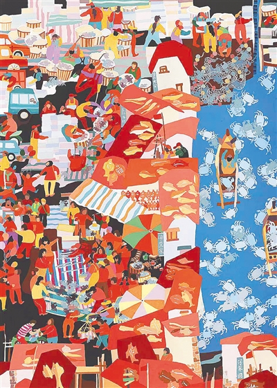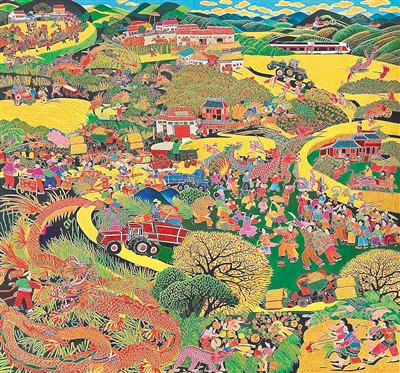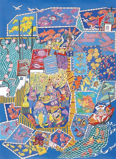 海南省南方美术研究院党支部书记林文生也注意到了这一变化。蓝色基调的展品《家园——山村新韵》尤其令他印象深刻,“以前的年画都是红色的,寓意红红火火。这种蓝色基调的作品很符合一部分年轻人的审美,也折射出年画的与时俱进。”