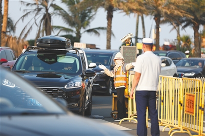 2月20日下午,海南日报记者走访海口长滨北路看到,现场交警、志愿者及各职能部门正在紧张有序引导车辆进港。