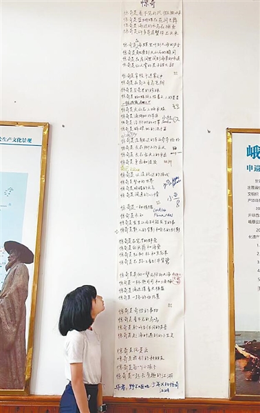 8天的旅行,峨蔓镇灵蕃村古盐田驿站老板李如方大部分时间陪同。《惊奇》长诗让李如方很有感触,他请求孩子们把长诗留下来,并挂在了驿站大厅正中央。