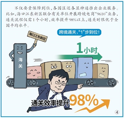 强引擎体现在发展支撑的进一步加强。海口江东新区联合有关单位开展跨境电商“9610”业务,海口复兴城为外籍人才提供“一对一”服务,乐城先行区引入高品质生活配套……各重点园区以“多领域、全方位”的创新服务为企业生产经营支持助力。