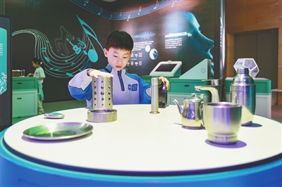2月14日,一名学生在五指山市科技馆参观体验。张江英 摄