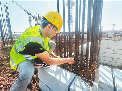 工人返岗、机器轰鸣……2月21日上午10时,位于澄迈县老城科技新城的嘉熙生命健康产业园,机器运转不停,工人正开展钢筋绑扎、模板支设作业,一旁的塔吊满负荷运转。
