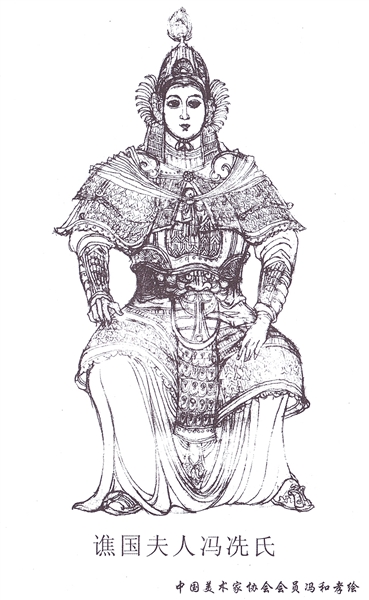 《中华冯氏源流史》中的冼夫人画像。 陈耿 翻拍
