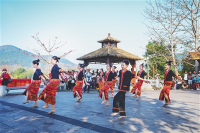 2月23日,为迎接元宵节,丰富群众文化生活,昌江黎族自治县七叉镇举办“大地欢歌”乡村文化节系列活动。图为小演员们表演歌舞节目。孟志军 摄