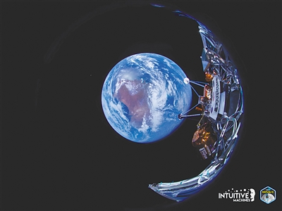 这是美国“直觉机器”公司提供的月球着陆器“奥德修斯”和地球的照片。新华社发