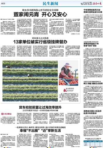 “元宵节,当地渔民有求福求平安的习俗。烧烛、敬香、放鞭炮最易发生火灾,我们消防员手提灭火器在现场时刻提醒大家注意防火安全。”正在渔排上带队巡查的陵水消防救援大队新村专职消防救援站副站长吉麒瑾向记者介绍,疍家渔排由一条条木板拼接成框架,纵横交错,一旦发生火灾后果不堪设想,这里的消防安全一刻也不能放松。