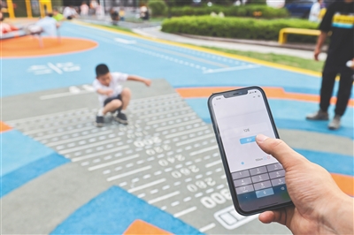 在上海市嘉定区AI社区运动公园,家长通过小程序录入小朋友跳远数据,数据将进入后台经AI分析得出相关报告。