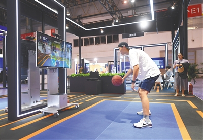 在HICOOL2023全球创业者峰会展览展示区,观众体验AI智慧体育运动系统。 本栏图片为资料图,均由新华社发