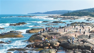 游客在海南环岛旅游公路文昌段游玩。赵文淦 摄