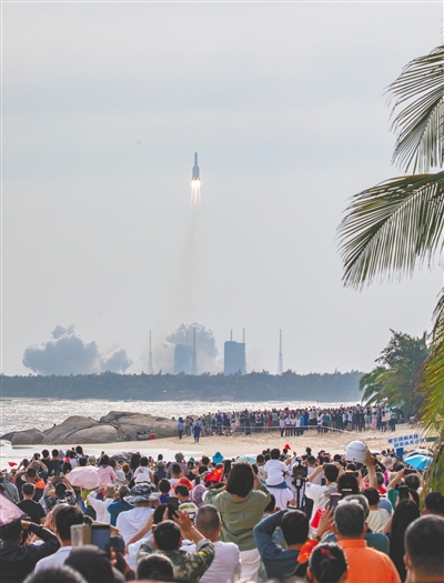 人们在文昌观看火箭发射。 海南日报记者 李天平 摄