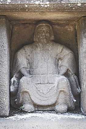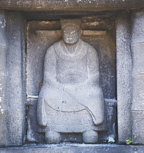 ③第3身:着宽袖公服戴幞头撑臂文官坐像。