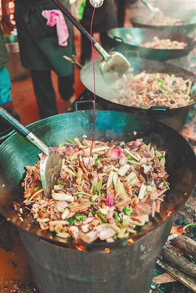 吉米拍摄的海南乡村婚宴菜肴烹饪场景。