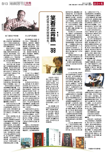 ■ 杨道在武侠小说的江湖中,梁羽生、金庸和古龙似乎一直处于“三足鼎立”的态势。而江湖流传的“开风气者,梁羽生;发扬光大者,金庸”既为梁羽生所言,亦是业界的共识。梁羽生是新派武侠小说的开山祖师,他一生创作了35部武侠小说,这些小说以朝代为界,诗词与侠义并重,古雅淳厚,道尽了江湖的恩怨情仇,生生不息。