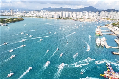 二月二十八日,在三亚游艇码头附近,众多游客乘坐游艇出海体验海上娱乐项目。新华社记者 张丽芸 摄