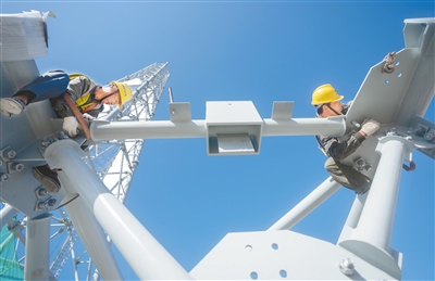 日前,海南商业航天发射场2号发射工位施工现场,建设者在作业。 本报记者 袁琛 摄