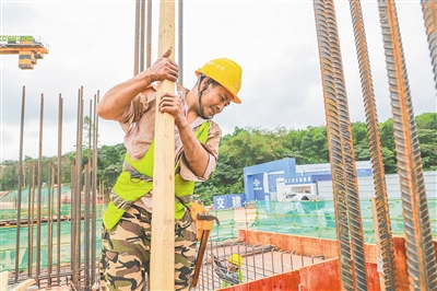 近日,在位于海口江东新区高教科研组团内的江东·梧桐里项目施工现场,施工人员正在进行主楼主体结构及基坑回填土方等施工。 本报记者 张茂 通讯员 符永枭 摄