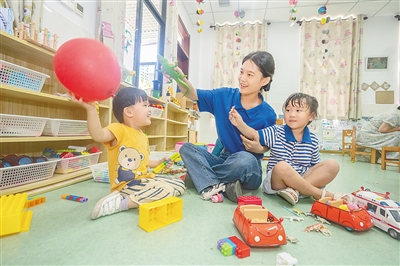 志愿者在暑假为孩子提供照护服务。 海南日报记者 袁琛 摄