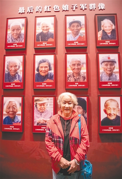 祝希娟在红色娘子军纪念园红色娘子军老战士照片墙前“合影”留念。本版图片除署名外均由特约记者蒙钟德摄