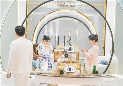 在cdf海口国际免税城,消费者选购香化类免税品。 本报记者 李天平 摄