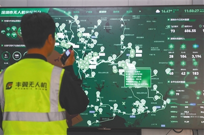 图为在深圳宝安区的丰翼无人机运营中心,机长对无人机进行调度。 深圳抢抓低空经济产业密集创新和高速增长的战略机遇,支持科技创新、设施建设和场景拓展,打造面向未来的“天空之城”。 顺丰旗下的丰翼科技(深圳)有限公司专注物流无人机“赛道”,自主研发的无人机运输能力强、机型多样、覆盖行业广泛。