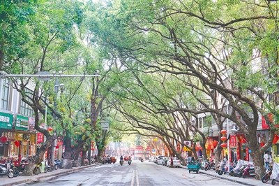 乡土树种里,香樟树、秋枫、榄仁树、凤凰木等,也是城市景观道路上广泛种植的遮阴树种。如海口的城西路、长怡路上的小叶榄仁,树木如雨伞一样撑开,车辆穿梭其中仿佛“绿中行”,成群的鸟儿落在树冠上叽叽喳喳,春天的气息扑面而来。