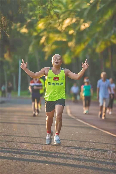 刘建成退休后,他的女儿来到海口工作。为了照顾外孙女,他和老伴也来了海口。“我以前一般是长距离骑行,骑一次就要三四个月。”刘建成说,来海口后,考虑到出门骑行时间太久,不方便照顾外孙女,但不运动自己的老毛病会复发,看到许多人在公园里跑步,他便萌生了长跑的想法。