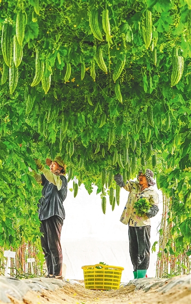 日前,产业园内,工作人员正在管护农作物。 本版图片均由本报记者 王程龙 摄