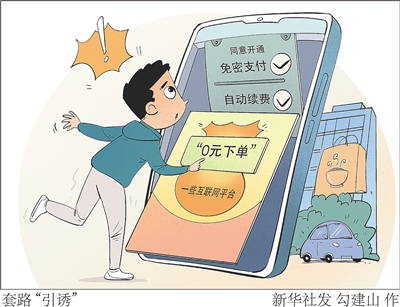 近期各类消费投诉中,与免输入密码支付、自动续费绑定开通会员相关的退款或维权纠纷案件数量常居前列;在社交媒体上,与之相关的词条、事件频频登上热搜;刑事案件中不乏偷窃或拾得手机后利用免密支付窃取大额钱财的案例。购物、打车、点外卖、坐公交、观影刷剧、修图听歌、租单车或充电宝……免密支付、自动续费为日常消费增加便捷。便捷的前提是透明、安全、自愿、公平。支付、续费时自动勾选的开通选项、“0元下单”“极速付款”的模糊引导、字号小又颜色浅的提示语,各种视觉技巧和价格套路轮番“引诱”,消费者一个不留神就容易“被”同意开通、强制捆绑,在“默认勾选”“隐藏选项”的各项复杂设置中被悄悄扣费。而相对于“一键开通”,消费者想要退订、退款,却没有那么容易,“一键完成”的付费项目需要“N键取消”,经历“套娃式”解套。