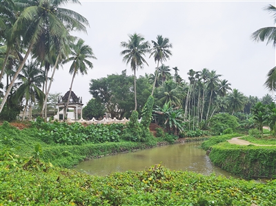 椰林中的文昌会文镇白延墟中山公园。 叶立标 摄