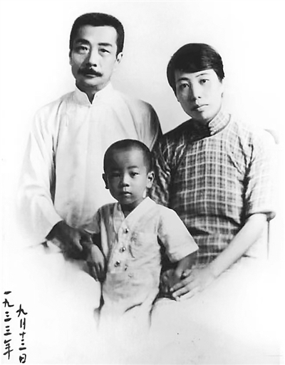 1933年,鲁迅与妻子许广平、儿子周海婴的合影。 资料图