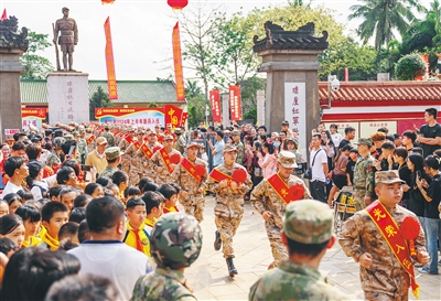 军地领导勉励入伍新兵,要带着情怀使命出发,传承好红色基因、赓续好“二十三年红旗不倒”的琼崖革命精神,积极适应部队环境,敢于磨炼摔打自己,用青春的激情、澎湃的热血浇灌绿色的梦想。要带着血性豪气出发,外练筋骨皮,内练精气神,争当强军先锋,努力把自己锻造成为合格的“四有”新一代革命军人。要带着宗旨意识出发,牢记“实现建军一百年奋斗目标”殷切嘱托,坚定信念、听党指挥、扎根军营、刻苦训练,不断提高备战打仗能力,在强国强军的新征程上成就出彩人生。