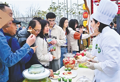 泡菜博览会上,参观者品鉴泡菜产品。 新华社发