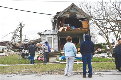 龙卷风14日席卷美国俄亥俄州、肯塔基州、印第安纳州、阿肯色州、伊利诺伊州和密苏里州多地,截至15日已致3人死亡、数十人受伤,另有大量房屋等建筑损毁。新华社/美联