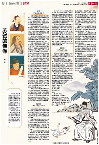 如果说偶像是那个指引我们前行的人,庄子无疑是困境中照亮苏轼心灵的明灯。苏轼曾感叹道:“吾昔有见于中,口未能言,今见《庄子》,得吾心矣!”意思是,庄子说出了许多他感悟到了却无法用言语表达出来的道理。