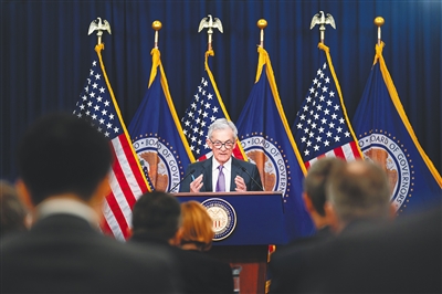 3月20日,美国联邦储备委员会主席鲍威尔在华盛顿出席记者会。新华社记者 刘杰 摄