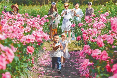 在三亚亚龙湾国际玫瑰谷,游客踏青赏景,畅享美好时光。本报记者 王程龙 摄