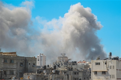 以军轰炸后希法医院附近产生的浓烟。新华社发