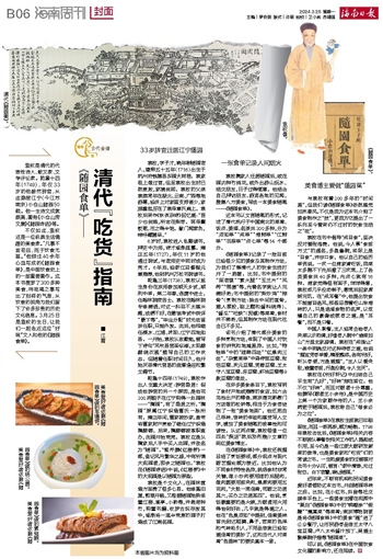 在许多美食条目下,袁枚写明了食材产地或推荐的食店,如六合龙池出产的鲫鱼、南京莲花桥教门方店做的松饼等,相当于为食客绘制了一张“美食地图”。他还把自己寻味、尝味的体验和感受写入文字,增加了美食随笔的故事性和可读性。从这两点看,袁枚很像一位四处“探店”然后发布推介文章的网红美食博主。