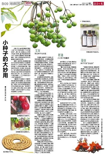 “植物种子主要是为了植物本身的基因保存和繁殖,在人类利用过程中,种子的其他功能逐渐被挖掘。”海南大学农林学院教授赵庆杰告诉海南日报记者,“有些种子可以食用、药用、榨油,也可以被用作调料,还有的会被作为工艺品,或是具有工业用途。”