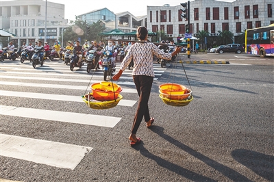 过马路的海鲜小贩。 2017/11/3 长堤路