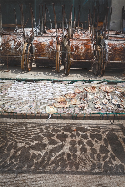 工地上晒鱼干。 2012/8/5 海运路