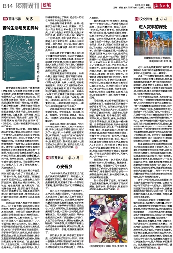 我曾读过朱湘山的第一部散文集《穿越苍凉》,他的散文走的是文化散文的路数,这部散文集也是如此。那时他退休未久,人生的苍凉成为过去。而这部散文集取名“微烛”,出自北宋秦观《拟题织锦图》的“微烛窥人悉断肠,机翻云锦妙成章”,原诗的苦苦相思被他撇开,只取“微烛”,暗喻自己散文记录的是普通人寻常行止以及他跋涉的漫漫长路,山重水复,花明柳暗,所见所闻所感化成“微光浅悟”,自称“愿它的微弱亮光能闪烁于尘世的夜间”(《后记》)。这话对纷纭繁杂的尘世充满了温情。倾情为普通人放歌。我很理解朱湘山的普通人情结,他始终把自己视为一个普通人,在退休之后回归文学的路上,以散文纪行、怀旧,与普通人产生情感的共鸣。这本身是他晚年的生活,故自觉地把一些普通人呈现在读者面前。集中的《金樯橹》讲的是文昌渔民老吴相当平淡无奇的故事,老吴是一个渔民,他的父亲及祖辈都是渔民,海上并非没有风浪,曾经渔船险遭倾覆,九死一生,有幸化险为夷。这样惊恐的情节被作者轻轻带过,只让老吴轻声表白,“船跟人久了,有了灵性和默契”,风险也就没了。