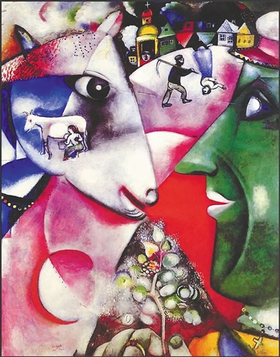 《我与我的村庄》(油画) 马克·夏加尔 作