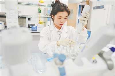 ②三亚崖州湾科技城种业专业研发外包服务公共平台(CRO)实验室里,科研人员利用自动化设备对种子进行核酸提取。 本报记者 王程龙 摄