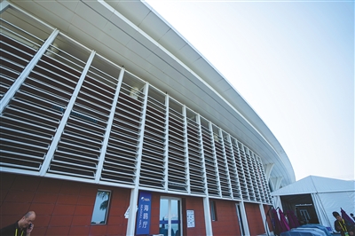 图❸ 博鳌近零碳示范区新闻中心外墙安装的光伏百叶。这些光伏百叶设置了自控系统,可以随着太阳的角度变化自动调整光伏百叶的倾角,最大程度利用太阳能。