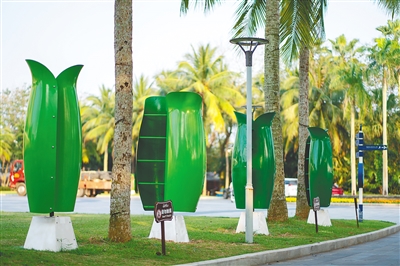 图❷ 博鳌近零碳示范区内的花朵风机。这一风机启动风速仅为1.2米/秒,是目前全世界范围内启动风速最低的风机,可以实现微风状态下启动发电,是城市建成区微风发电的典型示范。