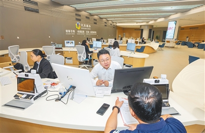 在海口江东新区政务服务中心办事大厅,工作人员为市民提供咨询服务。本报记者 李天平 摄