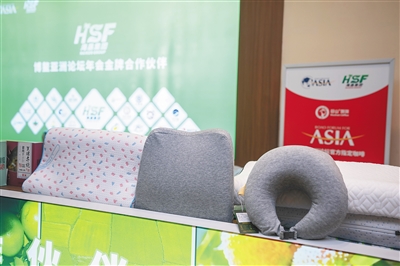 ① 博鳌亚洲论坛会议中心农垦服务台上摆放的“好舒福”乳胶制品。